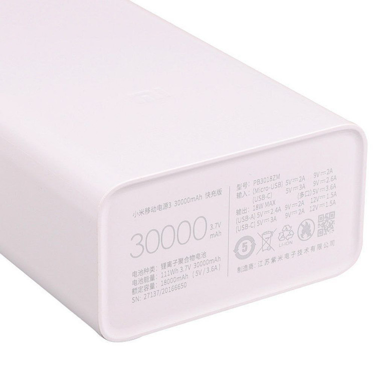 پاوربانک شیائومی مدل PB3018ZM ظرفیت 30000 میلی آمپر کیفیت اورجینال لیبل 04